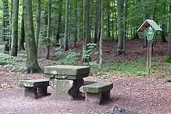 An der Kreuzung Rosenweg/L-Flügel/Flügelweg steht der im Jahre 1692 errichtete Steinerne Tisch, der damals dem König von Sachsen bei der Jagd als Rastplatz diente., 1891 wurde er vom Gebirgsverein Sektion Goldne Höhe wieder hergestellt. Am Marktsteig, nicht weit von den Poisenhäusern, erinnert ein Gedenkstein an den von der Gestapo am 12. August 1941 hingerichteten polnischen Zwangsarbeiter Adolf Kalwac.