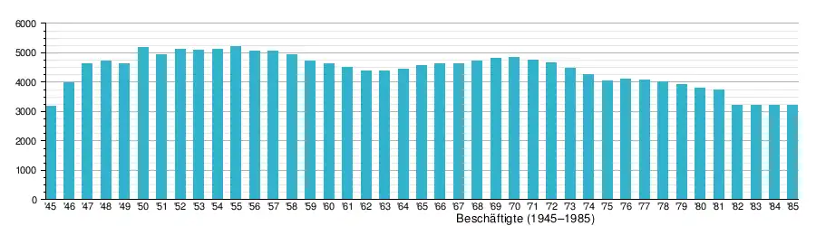 Nach dem Zweiten Weltkrieg konnte Pesa Bydgoszcz einen starken Anstieg hinsichtlich der Beschäftigung verzeichnen. Dieser Trend stoppte im Jahr 1955 mit 5229 Beschäftigten. Ab diesem Zeitpunkt und nach einer zwischenzeitlichen Anstiegsphase (1962–1970) verringerte sich die Anzahl der Mitarbeiter bis zum Jahr 2000 (997 Mitarbeiter) sukzessive. Seit 2001 kann wieder ein Anstieg beobachtet werden.[16][17][18][19]
