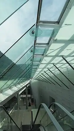 Von der Straße aus ist das Museum über einer Brückenkonstruktion zu erreichen, von der die Besucher in das oberste Stockwerk gelangen, das lediglich aus einem kleinen Eingangsbereich besteht. Von hier geht der Weg über Rolltreppen herunter in die vierte Etage, in der sich der Kassenbereich, eine Buchhandlung und das Museumsrestaurant befinden. Eine Etage tiefer sind ein Vortragssaal, ein Ausstellungsraum, das Museumscafé, ein Souvenir- und ein Informationsstand untergebracht. Diese Etage ist wie das darunter befindliche Stockwerk kreuzförmig um das Atrium mit seinen Rolltreppen angeordnet. Im bereits vollständig unterirdischen zweiten Stockwerk liegen vier weitere Galerieräume. Das unterste Stockwerk enthält die Versorgungseinrichtungen und ist für Besucher nicht zugänglich.