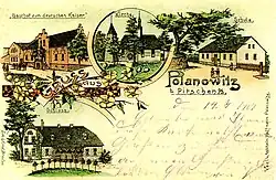 1841 wird ein Schulhaus im Ort erbaut.[4] 1845 bestanden im Dorf eine evangelische Kirche, eine evangelische Schule, eine Brennerei und weitere 74 Häuser. Im gleichen Jahr lebten in Polanowitz 533 Menschen, davon zwei katholisch und zehn jüdisch.[2] 1861 lebten in Polanowitz 646 Menschen.[4] 1872 wird ein Schloss im Ort erbaut.[5] 1874 wurde der Amtsbezirk Polanowitz gegründet.[6] Zwischen 1890 und 1891 wird die Straße nach Proschlitz angelegt.