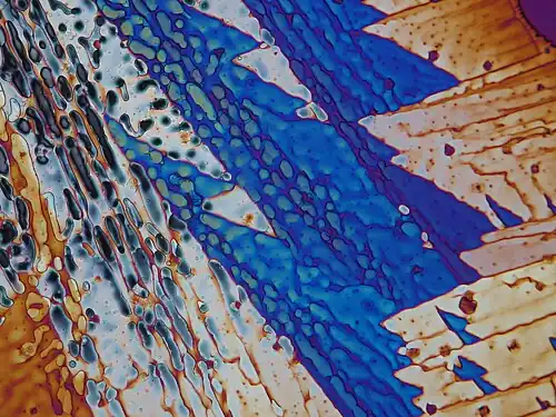 Calciumnitrat-Kristall im Polarisationsmikroskop
