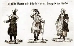 Polnische Bauern und eine Bäuerin aus der Umgebung von Krakau, sogenannte Krakowiacy, von 1852 (Kleinpolen)