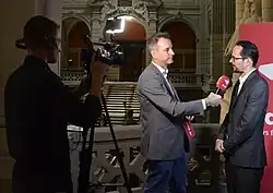 Schweizer Parlamentswahlen 2019: Wahltag im Bundeshaus. Interview mit Balthasar Glättli (Fraktionspräsident Grüne) durch nau.ch in der Kuppelhalle, Bern