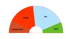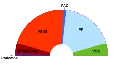 | Partei | PP | PSOE | VOX | Podemos- IU |