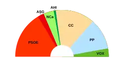 | Partei | PSOE | CCa | PP | NCa | VOX | ASG | AHI |