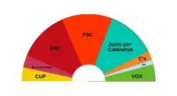 | Partei | PSC-PSOE | ERC | Junts | VOX | ECP | CUP | C's | PP | ![]() |