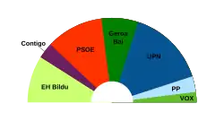 | Partei | UPN | PSOE | EH Bildu | Geroa Bai | PP | Contigo