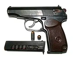 Dekrete vom Oktober 2002 und April 2003 legen die Regeln für die Uniformen der Polizisten fest.[1] Das Polizeipersonal ist hauptsächlich mit Schusswaffen und Munition aus sowjetischer Produktion bewaffnet, darunter Makarov PM und Tokarew TT-33 Handfeuerwaffen sowie AKS, AKM und AK-74 automatische Gewehre.[1]