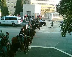 Daneben besteht die Grenzpolizei (hebräisch מִשְׁמַר הַגְּבוּל Mischmar HaGvul oder kurz מג״ב MaGa"V), die unter anderem eine besondere Verantwortung für die Terrorismusbekämpfung trägt[3] und hierfür die Spezialeinheit JAMAM unterhält.
