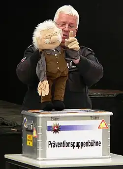 - ↑ 1000. Vorstellung der Polizeipuppenbühne des Polizeipräsidiums Trier. In: Bildungsserver Rheinland-Pfalz – Verkehrserziehung. Rheinland-Pfalz–Ministerium für Bildung, 1. Juli 2015, abgerufen am 18. Januar 2022.