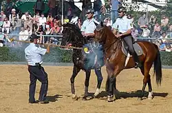In den Bundesländern, die über eine Reiterstaffel verfügten, trugen die berittenen Beamten beigefarbene Stoff-Reithosen mit hohen schwarzen Schaftstiefeln. In Bayern bestanden die Reithosen hingegen aus hellbraunem Wildleder.