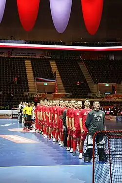 Spieler der polnischen Mannschaft beim Abspielen der Nationalhymne während der Weltmeisterschaft 2022 in Zürich