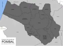 Pombal ist Sitz eines gleichnamigen Kreises (Concelho) im Distrikt Leiria. Am 19. April 2021 hatte der Kreis 51.170 Einwohner auf einer Fläche von 626,0 km²[3].