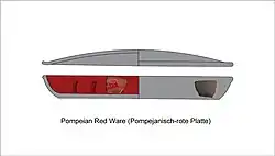 Pompejanisch-rote Platten kommen im italischen Raum im 3. Jahrhundert vor Christus auf. Mit der Ausbreitung des Römischen Reiches gelangten sie in alle Provinzen. In der zweiten Hälfte des 1. Jahrhunderts nach Christus gerät diese Gefäßart aus der Mode.