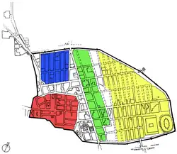- ↑ Mithilfe von Ertragsberechnungen dieses Geländes und ähnlicher Flächen wurden – mit unterschiedlichen Ergebnissen – Kalkulationen hinsichtlich der Einwohnerzahl unternommen.