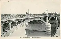 Schon 1874 wurden Forderungen nach einer neuen Brücke laut, nachdem der Zustand der Seile und Schäden aus dem Deutsch-Französischen Krieg Anlass zu Besorgnis gaben. Im Lauf der Jahre machte der zunehmende Verkehr die Angelegenheit immer dringender. Es dauerte jedoch bis 1901, bis der endgültige Beschluss gefasst wurde, eine neue, erheblich größere Brücke zu bauen, die stabil genug sein sollte, auch eine Straßenbahn aufzunehmen. Diese Brücke wurde in der Zeit von 1903 bis 1905 nach Plänen des Ingenieurs Caldagues gebaut. Die Dekoration der Brücke ist von Jules Formigé, die Figuren von Florian Kulikowski.[1]