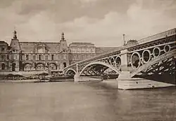 1830, am Anfang der Julimonarchie, wurde die Konzession für den Bau und Betrieb einer neuen Brücke ausgeschrieben, die die Seine mit nur zwei Pfeilern überspannen sollte, einer für feste Brücken neuen Anforderung. Antoine-Rémy Polonceau hatte sich von Carl Friedrich von Wiebeking und Georg Friedrich von Reichenbach zum Entwurf einer Bogenbrücke mit Trägern aus gusseisernen Rohren anregen lassen, deren Zwickel durch Ringe mit abnehmendem Durchmesser gefüllt waren anstelle der später üblich werdenden senkrechten Aufständerungen.[2][3] Polonceau hoffte, mit seinem Vorschlag zum Zuge zu kommen, auch weil in Paris seit dem Pont des Arts und dem Pont d’Austerlitz vor fast 30 Jahren keine Eisenbrücke mehr gebaut worden war. In dem Vergabeverfahren wurde der Zuschlag jedoch für eine der damals häufig errichteten Hängebrücken der Gebrüder Marc Seguin erteilt. Polonceau wollte dies nicht hinnehmen und erreichte in einem Gerichtsverfahren, dass die Vergabe aufgehoben und der Zuschlag für eine Eisenbrücke erteilt wurde, allerdings für den Entwurf eines Konkurrenten. Polonceau kaufte diesem die Konzession ab und erreichte die Genehmigung, seinen eigenen Entwurf ausführen zu können.[4]