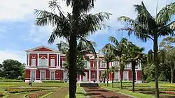 - Im Palácio de Sant’Ana residiert, wechselweise neben zwei weiteren Amtssitzen in Horta und Santa Maria, die Regierung der Autonomen Region der Azoren. In den Räumen der, für die Öffentlichkeit nicht zugänglich, dreiflügeligen Anlage findet man wertvolle Möbelstücke. Um den Palast liegt die größte botanischen Anlage der Insel, der Jardim Jácome Correia, auch: Jardim do Palácio de Sant’ana. Die Familie Correia hatte 1846 einen englischen Architekten mit der Anlage des Palastes und des Parks beauftragt. Östlich des Palastes ist die zweite Parkanlage Jardim José do Canto mit der, zum Hotel umgebauten, Residenz des Parkgründers, der Palacio José do Canto. José do Canto war ein Gartenliebhaber und ließ die Anlage im 19. Jahrhundert auf einer Fläche von rund fünf ha mit mehreren Tausend exotischen Pflanzen anlegen, die aus Belgien, Deutschland, London, Paris und Rio de Janeiro geliefert wurden. Er führte darüber hinaus auch eine Liste von Pflanzen, die er nicht in seiner Parkanlage haben wollte.[4]