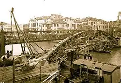Es gab schon im 15. Jahrhundert Pläne, an dieser Stelle eine Brücke zu bauen, jedoch erst unter der k.u.k. Verwaltung wurde am 20. November 1854 die nach den Plänen des englischen Ingenieurs Alfred Henry Neville konstruierte Eisenbrücke eröffnet.