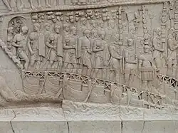 - ↑ Vgl. ausführlich dazu: Werner Eck: Kommunikation durch Herrschaftszeichen: Römisches Militär und römische Amtsträger in den Provinzen. In: Olivier Hekster u. a. (Hrsg.): Ritual Dynamics and Religious Change in the Roman Empire (= Impact of Empire, 9). Brill, Leiden 2009, S. 213–235 (Open Access).