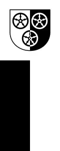 Blasonierung: „In dem von Silber und Schwarz gespaltenen Schild drei fünfspeichige Räder (2:1) in verwechselten Farben.“[15] |