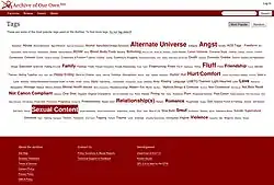 Tag-Übersicht des Fanfiction-Portals Archive of Our Own