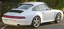 Wie beim 964 wurde der 993 mit Heck- (Carrera) oder mit Allradantrieb (Carrera 4) angeboten. Ab 1996 erhielten die stärkeren und höherwertigen Fahrzeuge wie früher ein S in der Typbezeichnung. Auch bei diesen Fahrzeugen konnte der Kunde zwischen dem Heck- (Carrera S) oder Allradantrieb (Carrera 4S) wählen. Der Motor entsprach mit 210 kW (285 PS) den Standard-Carrera-Modellen.[38] Die Wagen hatten jedoch die vier Zentimeter breitere Karosserie des Turbo und der Carrera 4S auch dessen stärkere Bremsanlage.