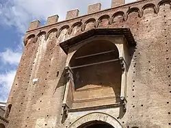An der Außenseite des Haupttores (nach der Vormauer) wurde 1417[4] oder 1421[5] von Taddeo di Bartolo ein Fresko begonnen, welches 1447 von Stefano di Giovanni Sassetta (Il Sassetta) weitergeführt und nach seinem Tod 1450 von Sano di Pietro von 1459 bis 1466 vollendet wurde. Die wenigen erhaltenen Teile des Freskos Incoronazione della Madonna wurden später in die Basilica di San Francesco überführt.[5]