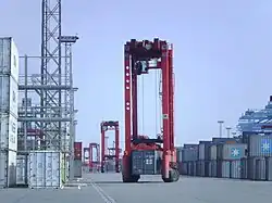 Alternative Methode zum Umschlag und Transport von Containern sind Containerbrücken, Reach-Stacker und gummibereifte Portalkräne. Letztere sind im Gegensatz zu Portalhubwagen mehrspurig und überspannen mehrere Containerbreiten.