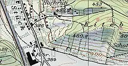 Während des Zweiten Weltkriegs wurde die stillgelegte Stollenbahn der Portlandzementfabrik Hausen für die Artilleriestellung Hausen an der Westflanke des Eitenbergs reaktiviert, um die 45 Kilogramm schwere Munition für die 15-cm-Haubitzen mit der Stollenbahn transportieren zu können.[3][4]