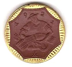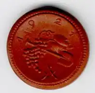 Von einigen Städten und Gemeinden gibt es auch Stücke mit der Jahreszahl 1922. Meist handelt es sich dabei um Sammlerstücke, die man noch vor dem Notgeldverbot vom 17. Juli 1922 (RGBl. I, 693) herstellte und ausgelieferte.[2] Nicht zu verwechseln ist das Porzellangeld mit Medaillen, Spendenmedaillen oder Firmenmünzen aus Porzellan, die zwar eine Wertangabe besitzen, aber trotzdem keine staatliche Währungsfunktion hatten. Firmenmünzen halfen in den Firmen, den internen Zahlungsverkehr zum Beispiel in den Kantinen für alltägliche Dinge aufrechtzuerhalten. Zudem hat man sie auch für Werbezwecke eingesetzt. Es gibt weiterhin noch Münzen und Jetons aus Keramik, welche nicht in der Manufaktur Meißen, sondern in anderen Firmen hergestellt worden sind.