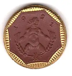 2. Frank Ringleb: Zur Geschichte der aus Böttgersteinzeug und Biskuitporzellan hergestellten Münzen und Jetons der Staatlichen Porzellan-Manufaktur Meissen, Katalog 1, Eigenverlag, Riesa, 2014, S. 16.