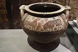 Südlich des Friedhofs entwickelte sich eine bedeutende Siedlung, deren antiker Name jedoch nicht bekannt ist. Man fand hier Grundmauern, Brunnen, Tonscherben und Steinblöcke aus dem 5. Jahrhundert v. Chr. Die Funde sind im Archäologischen Museum von Korinth und im Museum von Isthmia ausgestellt.