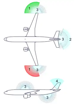 Schematische Darstellung zur Lage der Positionslichter bei Luftfahrzeugen