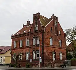 Das zweigeschossige giebelständige historisierende Eckgebäude in Backstein, mit ziegelgedecktem Satteldach wurde 1891 gebaut. Das nördliche Giebelrisalit in der Ostfassade hat einen Staffelgiebel und eine spitzbogige Blendnische, vergleichbar in beiden Giebelspitzen an Nord- und Südseite.[2] Heute soll es als Shalomhaus Otterndorf saniert und eingerichtet werden, um Menschen unabhängig von sozialer, religiöser, ethnischer und politischer Herkunft als Unterkunft und Zentrum zu dienen.