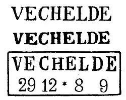 Nach der Aufhebung der Postwärterei in Bettmar, erhielt Vechelde 1825 eine Postexpedition. Seit dieser Zeit sind die Einzeiler zu finden, meist mit einer handschriftlichen Datumsangabe. Unter dem Postexpedienten Heinrich Friedrich Hansemann (Amtszeit 1833 bis 1853) wurden die Stempel in schwarz abgeschlagen. Sein Nachfolger Theodor Ludwig Borchers (1854 bis 1866) bekam 1854 den Rechteckstempel. Der Postexpedient stempelte in blauer Farbe. Die Briefmarken wurden ab 1856 mit dem Rostrautenstempel „43“ entwertet.