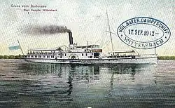 Schon im Mittelalter vertrauten die Menschen um den Bodensee schriftliche Nachrichten und wertvolle Güter den Marktschiffen an. Seit 1813 beförderten Postschiffe auf dem Bodensee offiziell[1] Seepost und später Schiffspost.[2] Die beiden Post-Segelschiffe wurden bereits nach der ersten Kursfahrt eines Dampfschiffs 1824 durch die schnelleren und vom Wind unabhängigen Raddampfer ersetzt. Obwohl der Bodensee ein Binnengewässer ist, hatten hier die Postschiffe eine besondere Bedeutung, weil vor 100 Jahren noch fünf Staaten an den See grenzten, die sich alle an diesem Postdienst beteiligten. Die Kursschiffe, die regelmäßig Post beförderten, wurden Postschiffe genannt; spezielle Post-Dampfschiffe gab es auf dem Bodensee nicht.