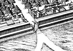 Die Potsdamer Brücke an der Grenze zwischen der Berliner Dorotheen- und Friedrichstadt war eine Brücke über einen Festungsgraben.