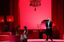 Szene 8. 1990: Der Hotelmanager fordert die Herzogin auf, das Hotel zu verlassen, da sie die Rechnungen nicht bezahlt hat. Sie versucht vergeblich, ihn zu verführen und reist schließlich ab.