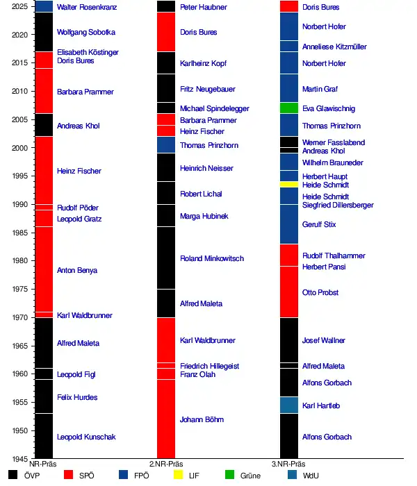 Doris BuresNorbert HoferAnneliese KitzmüllerNorbert HoferMartin GrafEva GlawischnigThomas PrinzhornWerner FasslabendAndreas KholWilhelm BraunederHerbert HauptHeide SchmidtHeide SchmidtSiegfried DillersbergerGerulf StixRudolf ThalhammerHerbert PansiOtto ProbstJosef WallnerAlfred MaletaAlfons GorbachKarl HartlebAlfons GorbachPeter HaubnerDoris BuresKarlheinz KopfFritz NeugebauerMichael SpindeleggerBarbara PrammerHeinz FischerThomas PrinzhornHeinrich NeisserRobert LichalMarga HubinekRoland MinkowitschAlfred MaletaKarl WaldbrunnerFriedrich HillegeistFranz OlahJohann BöhmWalter RosenkranzWolfgang SobotkaElisabeth KöstingerDoris BuresBarbara PrammerAndreas KholHeinz FischerRudolf PöderLeopold GratzAnton BenyaKarl WaldbrunnerAlfred MaletaLeopold FiglFelix HurdesLeopold Kunschak