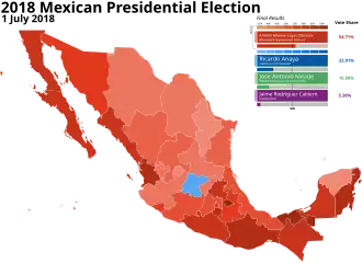 Sieger der Präsidentschaftswahlen wurde der Links-Nationalist Andrés Manuel López Obrador von der Koalition Juntos Haremos Historia (MORENA, PT und PES). Er trat sein Amt im Dezember 2018 als Nachfolger von Enrique Peña Nieto an.
