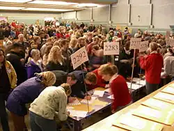 Darüber hinaus gibt es (bei den Demokraten seit 1982) sogenannte „Superdelegierte“ (superdelegates oder unpledged delegates).[2] Diese gehen nicht aus den Vorwahlen hervor, sondern sind meist (gegenwärtige oder frühere) Amtsinhaber und Parteioffizielle.[3] Diese sind in ihrer Wahl des Kandidaten frei, wodurch Prognosen erschwert werden.[4] Die Zuordnung zu einem „Lager“ erfolgt dann aufgrund veröffentlichter Unterstützungsbekundungen (endorsements). Bei den Demokraten können die Superdelegierten jedoch erst dann ihr Stimmrecht ausüben, wenn in der ersten Abstimmung kein Kandidat die erforderliche Mehrheit erhalten hat.[5] Inwieweit auch die verpflichteten Delegierten formell daran gebunden sind, ihre Stimme tatsächlich für „ihren“ jeweiligen Kandidaten abzugeben (oder aber theoretisch davon abweichen können), hängt von den jeweiligen Gesetzen und den Satzungsbestimmungen der Partei im jeweiligen Bundesstaat ab.