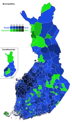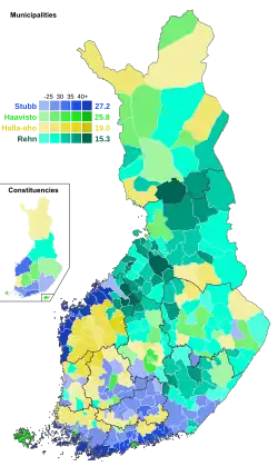 - ↑ a b c Pia Gripenberg: Valet i Finland: Fördel Stubb inför andra omgången. In: Dagens Nyheter. 29. Januar 2024 (schwedisch, dn.se [abgerufen am 29. Januar 2024]).