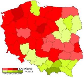 | Aleksander Kwaśniewski | Sojusz Lewicy Demokratycznej | 6.275.670 | 35,1 | 9.704.439 | 51,7 | |