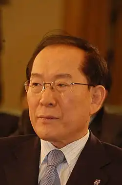 Die 17. Präsidentschaftswahl in Südkorea fand am 19. Dezember 2007 statt. Aus der Wahl ging Lee Myung-bak von der Hannara-Partei (한나라당, Hannara-dang, Große Nationalpartei) als Sieger hervor, womit die Konservativen erstmals seit zehn Jahren wieder ins Blaue Haus, den Amtssitz des Präsidenten, einziehen können. Lee besiegte dabei den Kandidaten der liberalen Yeollin-uri-Partei (열린우리당, Yeollin-uri-dang, Unsere Offene Partei), Chung Dong-young, der unter dem amtierenden Präsidenten Roh Moo-hyun als Minister für die Vereinigung gedient hatte, den Kandidaten der Demokratischen Partei Lee In-je und den unabhängigen konservativen Kandidaten Lee Hoi-chang mit dem größten Vorsprung vor dem Zweitplatzierten seit der Wiedereinführung von direkten Wahlen im Jahre 1987.[1] Gegen Lee wurde allerdings noch wegen Beteiligung an einem gesetzeswidrigen Aktiengeschäft ermittelt.[2] Die Ermittlungen mussten vor der Amtseinführung abgeschlossen sein.[3] Ihm konnte damals nichts nachgewiesen werden.[4]