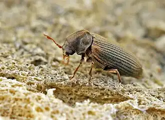 Schadinsekten lassen sich auf verschiedene Weisen klassifizieren, wobei hier die Unterscheidung nach dem zu zersetzendem Material von besonderem Interesse ist. Innerhalb der Gruppe der Nagekäfer gibt es verschiedene Materialzerstörer und auch den in Europa stark verbreiteten Holzzerstörer: den Gemeinen Nagekäfer (Anobium punctatum), auch Holzwurm genannt. Dazu verbreitet sich in europäischen Sammlungen aber auch in Privathaushalten immer mehr das Papierfischchen, welches sich von Cellulose ernährt und damit relevant als Schädling von Papierobjekten ist.[23] Darüber hinaus gibt es noch viele weitere Arten von Schadinsekten in Sammlungen anzutreffen, z. B. die Kleidermotte, welche sich von Keratin ernährt und daher potenziell in Kostümsammlungen vorkommen kann.