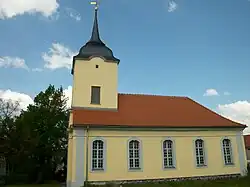 - Dorfkirche. Der Kirchenbau ist im Kern ein längsrechteckiger, mittelalterlicher Feldsteinbau aus der Zeit im 1300. Um 1747 wurde er in einen barocken Putzbau umgestaltet mit veränderten Fenster- und Türöffnungen. 1839 bis 1841 fanden größere Instandsetzungsarbeiten statt. 1953 erfolgte eine Renovierung des Innenraumes, 1960 die Erneuerung des Außenputzes. 1967/8 wurde der Turm erneuert. Die letzte große umfassende Sanierung fand 2003 bis 2008 statt.