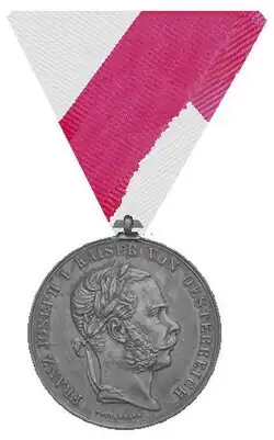 Die runde, aus Silber gefertigte Medaille zeigt das nach links gewendete Brustbild des Stifters, der auf dem Kopf einen Lorbeerkranz trägt. Umlaufend findet sich die Inschrift FRANZ JOSEPH I KAISER VON OESTERREICH. Im Revers ein unten zusammengebundener Eichenlaubkranz, in dessen Mitte die unterstrichene Jahreszahl 1866 zu sehen ist.