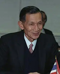 Er wurde am 2. Oktober 1992 Außenminister im Kabinett Chuan Leekpais und spielte eine Rolle bei der Befriedung des Verhältnisses zu Vietnam. Andererseits spielte er die traditionelle thailändische geopolitische Sicherheitspolitik in Südostasien in den Vordergrund. Am 25. Oktober 1994 wurde er durch ein anderes Mitglied der Palang Dharma ersetzt, den späteren Premierminister von Thailand Thaksin Shinawatra.