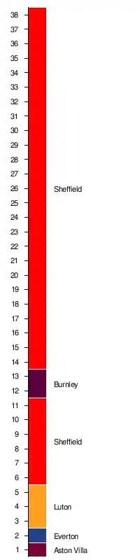 | Sheffield United | 0:6 | 0:5 | 1:3 | 1:0 | 0:5 | 1:4 | 2:2 | 0:1 | 2:2 | 3:3 | 0:2 | 2:3 | 1:2 | 1:2 | 0:8 | 1:3 | 0:3 | 2:2 | 2:1 | |